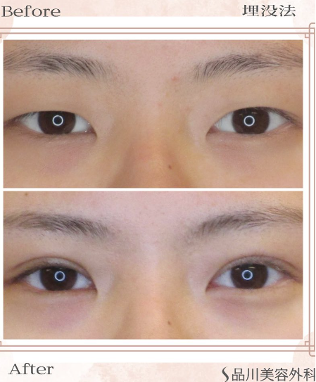 1埋没法:非切開で糸を使用、傷跡が残らない、まぶたが薄い方に適している施術法